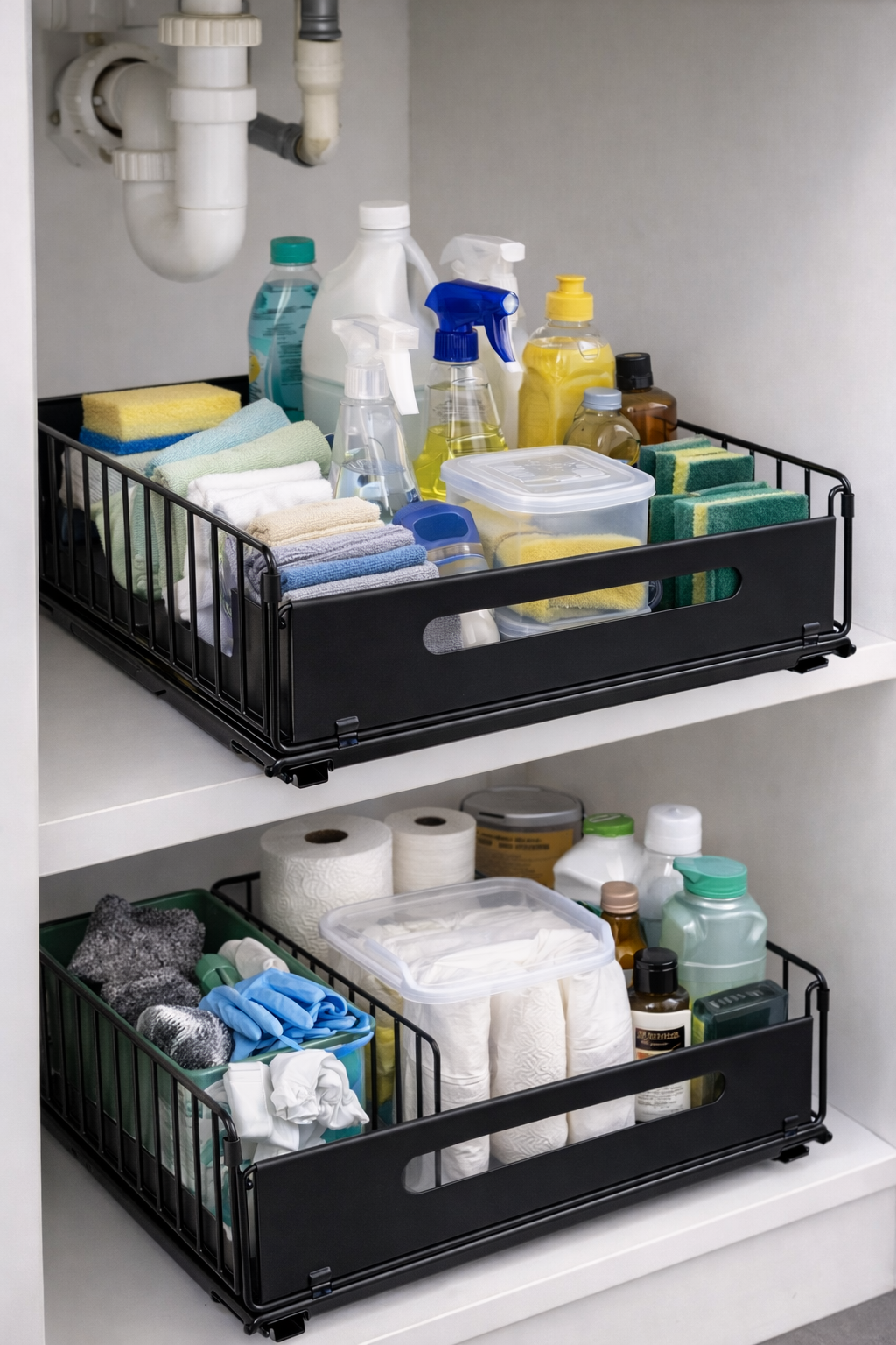 ClearSpace™ verwandelt unübersichtliche Schränke in ein perfekt organisiertes System – ganz ohne Bohren, ohne Werkzeug und ohne Stress.